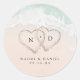 Modern Script Hearts Monogram Beach Wedding Favour Classic Round Sticker