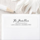 Send holiday mail in style with this modern script return address label sticker. Featuring elegant handwritten typography paired with clean serif accents, this festive design adds a sophisticated touch to your Christmas cards, invitations, and seasonal correspondence. Personalized with your family name and address, it blends timeless design with holiday charm — perfect for creating a cohesive, elegant look for your holiday greetings.
