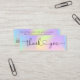 say big thank you and show your love and customer appreciation with this modern script card with the blush pink heart and holographic background, inviting them to purchase again, leave a review and tag you on social media. You can change the colours of the heart, text and icons to fit your branding