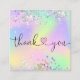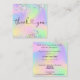 say big thank you and show your love and customer appreciation with this modern script card with the heart and holographic background, inviting them to purchase again, leave a review and tag you on social media. You can change the colours of the heart, text and icons to fit your branding