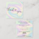 say big thank you and show your love and customer appreciation with this modern script card with the heart and holographic background, inviting them to purchase again, leave a review and tag you on social media. You can change the colours of the heart, text and icons to fit your branding