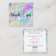 say big thank you and show your love and customer appreciation with this modern script card with the heart and holographic background, inviting them to purchase again, leave a review and tag you on social media. You can change the colours of the heart, text and icons to fit your branding