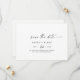 This modern script horizontal save the date card is perfect for a minimalist wedding. The simple black and white design features unique industrial lettering typography with modern boho style. Customizable in any colour. Keep the design minimal and elegant, as is, or personalize it by adding your own graphics and artwork.