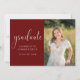 Share the news of your graduation party with this photo graduation invitation. This invitation features a maroon background with white text. Add a photo and customize text on the front and back to include all details for your graduation party.