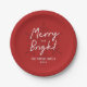 Modern Script Merry & Bright Snowflakes Christmas Paper Plate