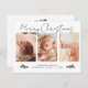 Modern Script Merry Christmas 3 Photo Collage Holiday Card