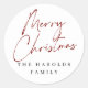 Modern Script Merry Christmas Custom Family Name Classic Round Sticker