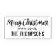 Holiday gift tag self-inking stamper features Merry Christmas in modern script. Personalize with your name / family name.