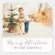 Modern elegant minimal holiday sticker features one large of your favourite photo, festive red script calligraphy "Merry Christmas" with classic serif lettering in black.