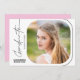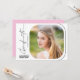 This modern script graduation party invitation features a minimalist design accented with handwriting style text on a white background. The backside offers custom text for you to add your party invitation details on a light pink background.
