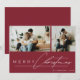 Modern Script Minimal Photo Red Merry Christmas Holiday Card