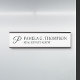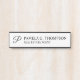 This hanging name plate features monogram in black modern script font style with name and title in black professional serif font style on white background.