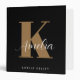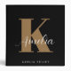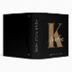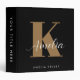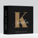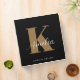Modern black binder featuring your monogram initial in a bold and large gold font and your name in a stylish white calligraphy signature script.