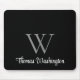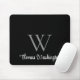 Modern professional monogram black mousepad with your Initial in elegant grey typography and your name in a stylish white script.