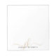 Personalized modern notepad with simple calligraphy style script initials or monogram and name in black and gold. CHANGES: The text font style, color, size and placement can be changed by clicking on CUSTOMIZE FURTHER under the PERSONALIZE section for a custom look or by contacting the designer via Zazzle Chat or makeitaboutyoustore@gmail.com if you'd like this design modified, on another product or would like coordinating items.