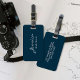 Introducing our personalized luggage tag – a stylish and practical accessory to enhance your travel experience. Designed with a sleek navy blue background and crisp white text, this tag combines aesthetics and functionality seamlessly.