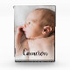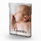 Modern Name Script Baby Vertical Photo Block - When we started having children my parents and in-laws kept asking for more photos of the baby. It's one thing to send them digital images, but a framed keepsake with a beautiful shot and baby's name is another. I was inspired to design this baby photo block for all the proud parents, godparents, uncles, aunts and grandparents out there. Display this elegant gift on your desk or mantel. Personalize baby's name and photo.