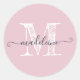 Modern Script Name Monogram Initial Parfait Pink Classic Round Sticker