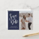 Modern Script Navy Minimalist Photo Save the Date Announcement Postcard