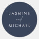 Seal your wedding envelopes with these simple and stylish envelope seals! The design features your names in modern white lettering complemented by a handwritten script with a navy background. These chic navy wedding stickers are perfect for sealing envelopes, adding to wedding favours, and more!