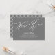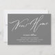 Grey New Home new address announcement featuring a modern script font with a coordinating plaid back for an extra touch.