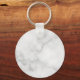 This keychain features personalized bridesmaid's name in grey modern script font style with title and wedding date in grey modern sans serif font style on white marble background.