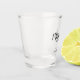 This shot glass features personalized bridesmaid's name in black modern script font style with title and wedding date in black modern sans serif font style.
