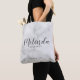 featuring personalized bridesmaid's name in grey modern script font style with title and wedding date in modern sans serif font style on white marble background.