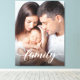 Immortalize your cherished family moments with our customizable stretched canvas, featuring a modern "Family" script type white overlay. This elegant canvas is not just a piece of art; it's a keepsake that beautifully captures the essence of your family's love and togetherness.