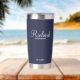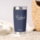 featuring personalized groomsman's name in white modern script font style with title and wedding date in modern sans serif font style on navy blue background.