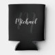 Modern Script Personalized Monogram and Name Black Can Cooler