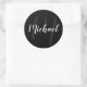 Modern Script Personalized Monogram and Name Black Classic Round Sticker