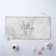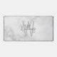 This design features personalized name in grey modern handwriting script font style and monogram in light grey modern sans serif font style as background, on white marble background.