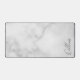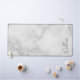 This design features personalized name in grey modern handwriting script font on white marble background.