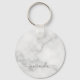 Modern Script Personalized Name White Marble Keychain