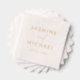 Elevate your wedding reception, engagement party, or rehearsal dinner with our Modern Foil Script wedding napkins. These custom napkins showcase your names and wedding date in sleek, modern lettering, enhanced by a sophisticated handwritten gold foil script for a stylish accent. Perfect for adding a personalized and elegant touch to your modern wedding, this design combines simplicity and charm to impress your guests. Personalize yours today for an unforgettable celebration!