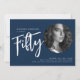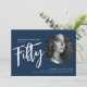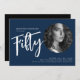 Modern Script Photo 50th Birthday Party Navy Blue Invitation