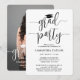 Share the joy of a high school or college graduation and invite family and friends to celebrate with elegant combination photo announcements and party invitations. The picture and wording on this template are simple to personalize and the colours are easy to change using the Zazzle design tool. The modern black and white design features a mortar board cap, trendy script calligraphy, elegant classic typography, and one photo of your choice, such as a senior picture or image from the commencement ceremony. This chic downloadable graduation card is a stylish way to announce a special day celebration. Congratulations to the graduate!