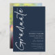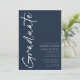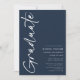 This is a minimalist and modern dark blue graduation announcement card. It is a simple and stylish handwritten script design in classic blue and white, with a photo at the back. Please contact the designer for any queries about this design.
