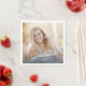 This photo napkin is a perfect personal accent to any graduation celebration. The design features a square photo with modern handwriting style script on top of the photo.