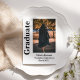 Graduation invitation with a modern script photo Simple script graduation invitations with a photo of the graduate are appropriate for high school and college.