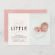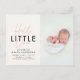Modern script photo hello little one simple stylish birth announcement. Modern polka dot backer.