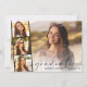 Elegant script photo overlay graduation party invitation flat card featuring the graduate's photo overlayed with a strip of three smaller square photos and "graduate" in a thin modern script and their name and class year in simple typography. On the reverse side, add the graduation party details.
