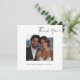 Express your gratitude in style with our elegant Modern Script Photo Wedding Thank You Card. Featuring a customizable photo template on the front, this card allows you to showcase your favourite wedding moment. The back includes easy-to-edit text templates, making it simple to personalize your message to family and friends. Perfect for newlyweds, this card combines sophistication with convenience, ensuring your heartfelt thanks are beautifully felt. Ideal for weddings, anniversaries, and special occasions.