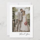 Show your appreciation with our Modern Script Photo Wedding Thank You Card, a personalized and stylish way to thank your guests after your wedding day. Featuring a clean, modern script “Thank You” on the front, this elegant wedding thank you card highlights your favorite couple photo, along with your names and wedding date for a meaningful, custom touch. The back of the card includes a heartfelt wedding thank you message to your guests, paired with an additional couple photo, creating a beautiful keepsake they’ll treasure. Perfect for thanking guests for attending your wedding and for their thoughtful gifts, this personalized photo wedding thank you card combines modern design, simplicity, and timeless elegance. Ideal for couples seeking custom wedding thank you cards, photo wedding stationery, or modern wedding stationery, this design is perfect for newlyweds who want a polished and memorable way to express their gratitude.