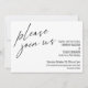 In simple, elegant piece, the modern, handwriting script font was used to create a graphic depicting the words "please join us". Use the template fields to add your personal details and make this unique, modern design your own. The background can be changed to any colour you prefer. Please reach out with any special requests or for customizing assistance. // 158 //