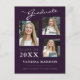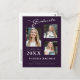Modern 3 photo graduation announcement postcards. This custom design combines handwritten, calligraphy style script with modern text in white and light grey on a stylish purple background. The back of the design offers customizable text fields for your announcement and graduates information. To see more items like this, visit my store here at "www.Zazzle.com/LakeViewCardCo". Thanks