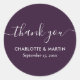 Create your own personalized purple wedding thank you sticker for your wedding/shower. Easily personalize online with your wedding/shower details. Matching items available to complement these minimalist, yet elegant purple wedding/shower round stickers with a moder script font.