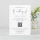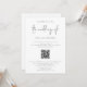 Modern Script QR Code Black and White Wedding. Available digitally and printed. Add your QR code to your wedding website so your guests can RSVP and see all the details online without the need for separate enclosures. An informal set typography in black for the main heading the Wedding Of complementing the rest of the text which you can easily personalise.