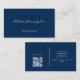 Modern Script QR Code Navy Blue Monogram Business Card